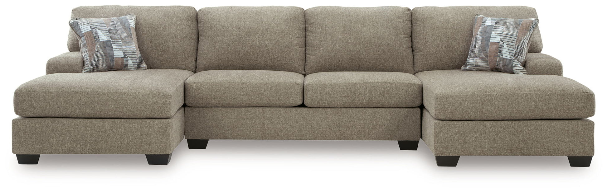 Newellen - 3-Piece Sectional With Double Chaise And Armless Loveseat - Beige